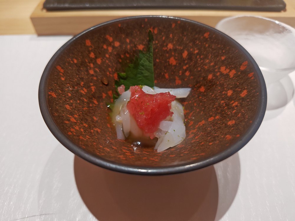 お次は小鉢の「烏賊素麺と酢橘餡掛け」です!