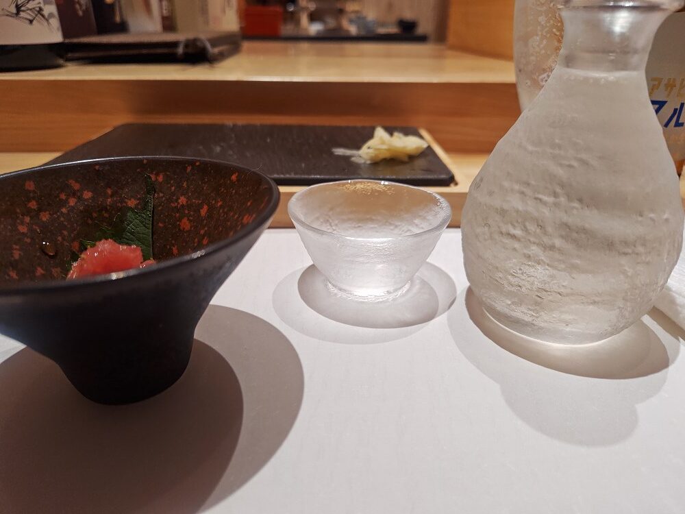 1人で4,980円つばきコース、日本酒3杯2,860円(880円×2,1100円)、ビール800円、追加握り1,552円
