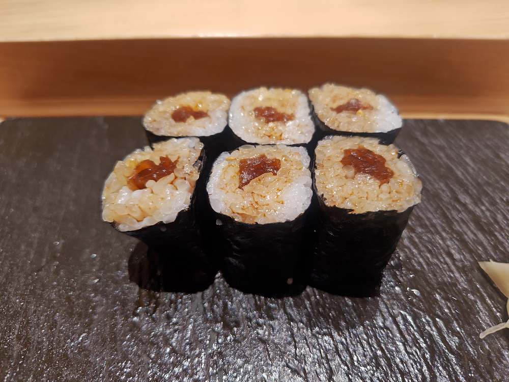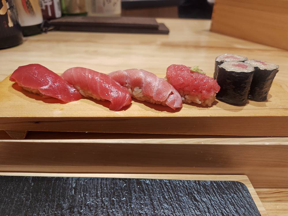 中身は赤身・中トロ・大トロ・ひっかき・鉄火巻き(ひっかき=中落ちで皮や骨の周りに付いた身のこと)でし。