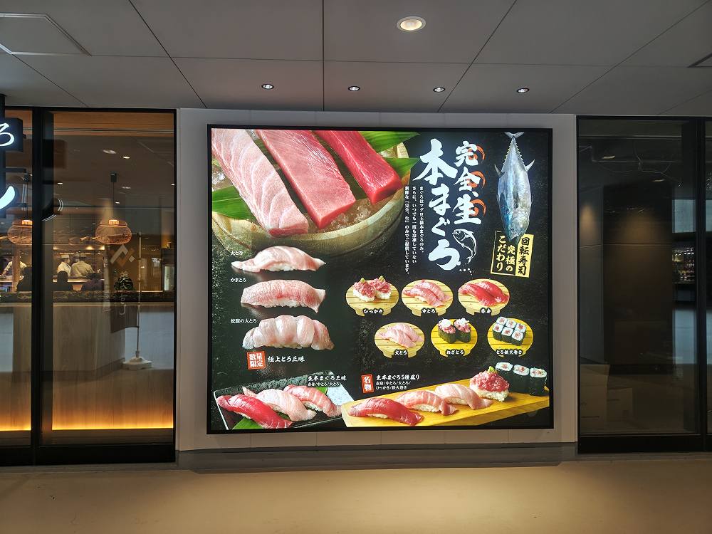 - 回転寿司あり、職人が目の前で握るカウンターあり