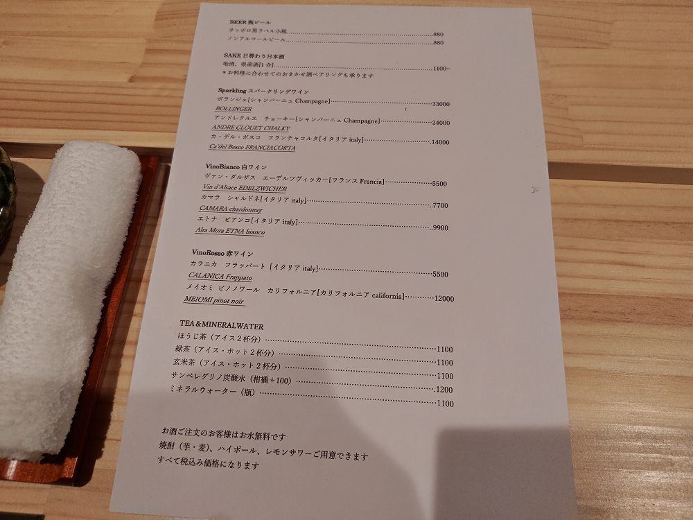 ・夜は現在18時30分スタート、16,500円(税込)コースのみ