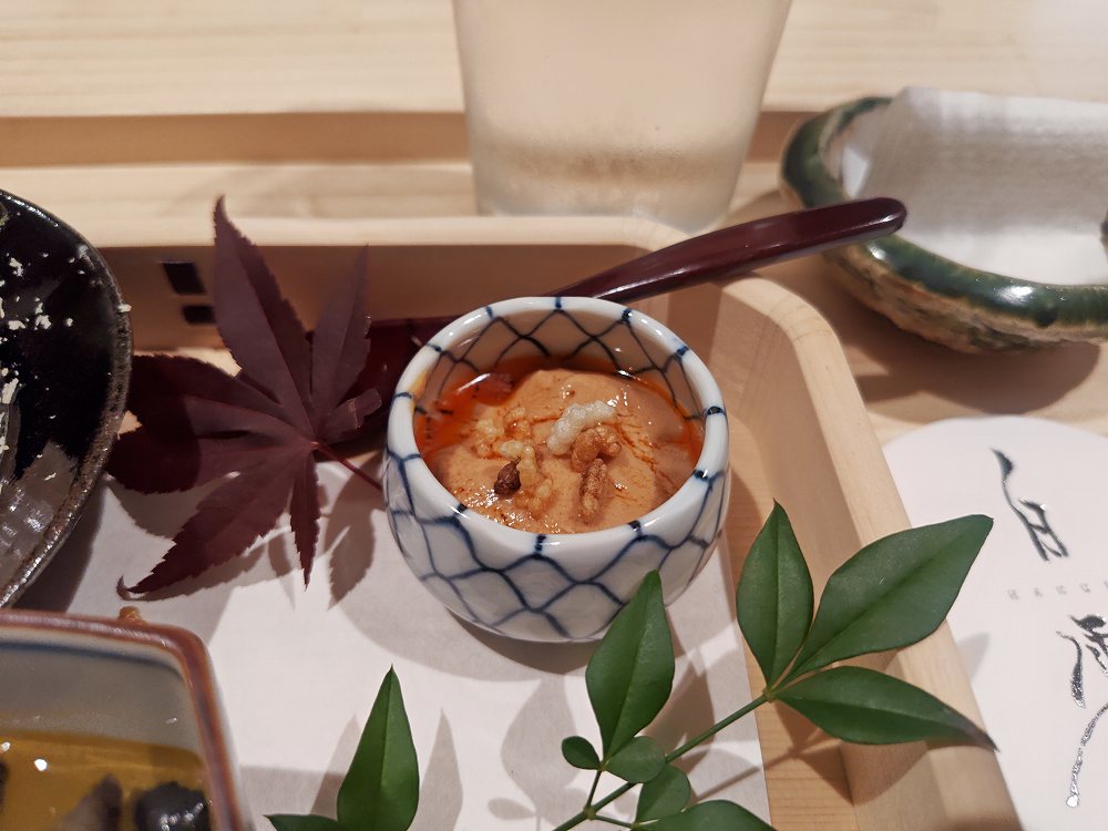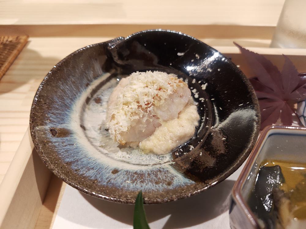 蒸した栗を削った物が上にかけられており、秋を味わう一皿に。