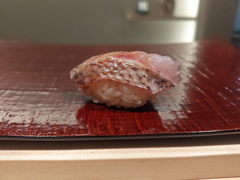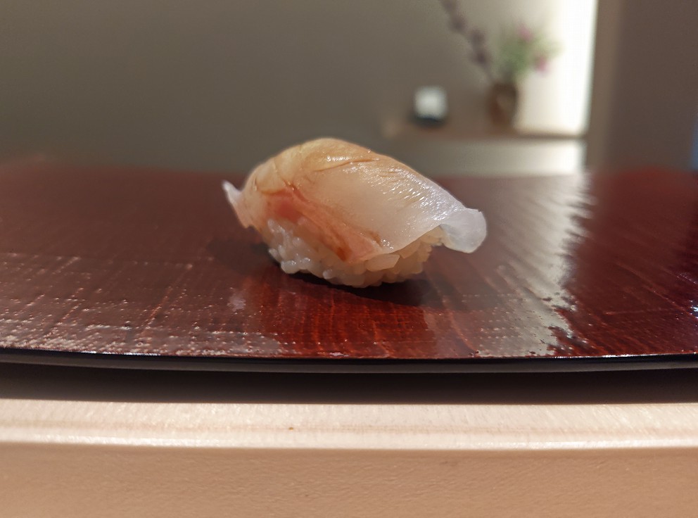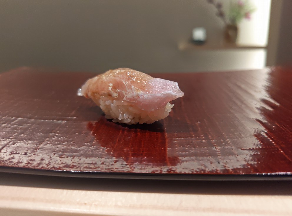 握り一貫目は「白甘鯛」です。
