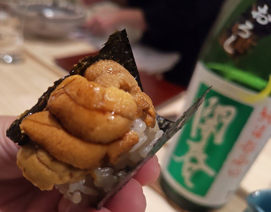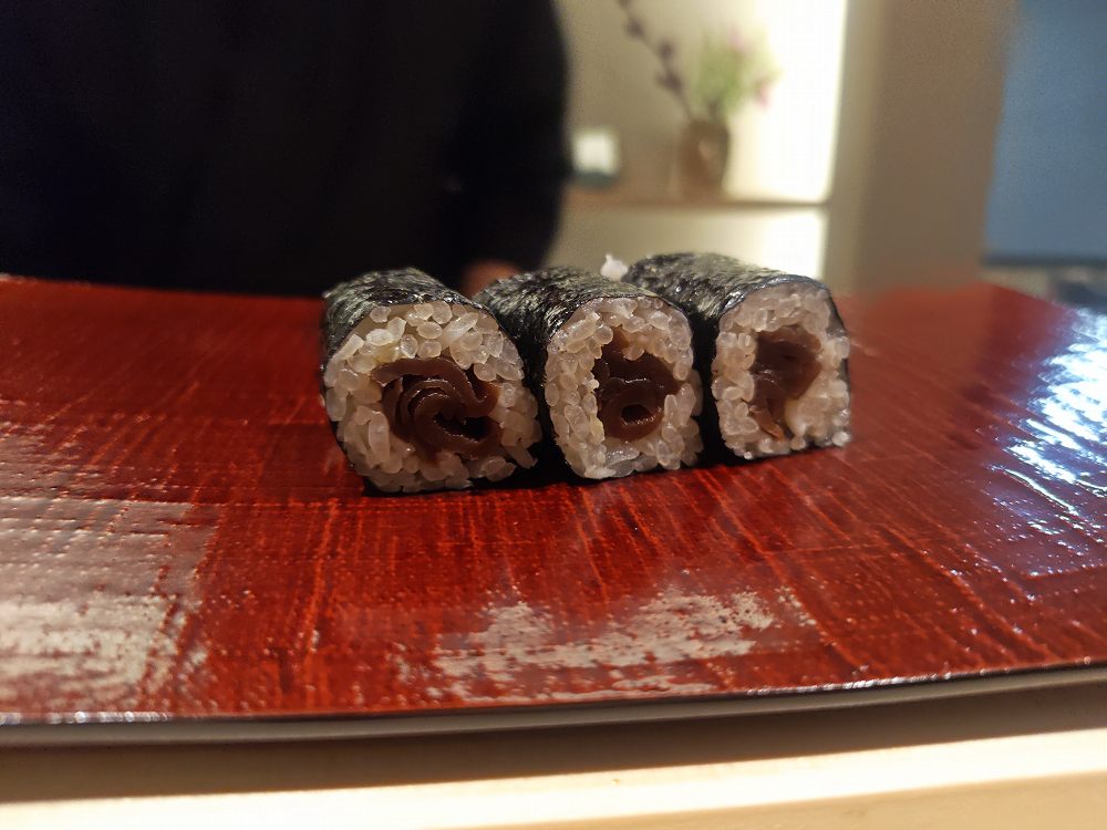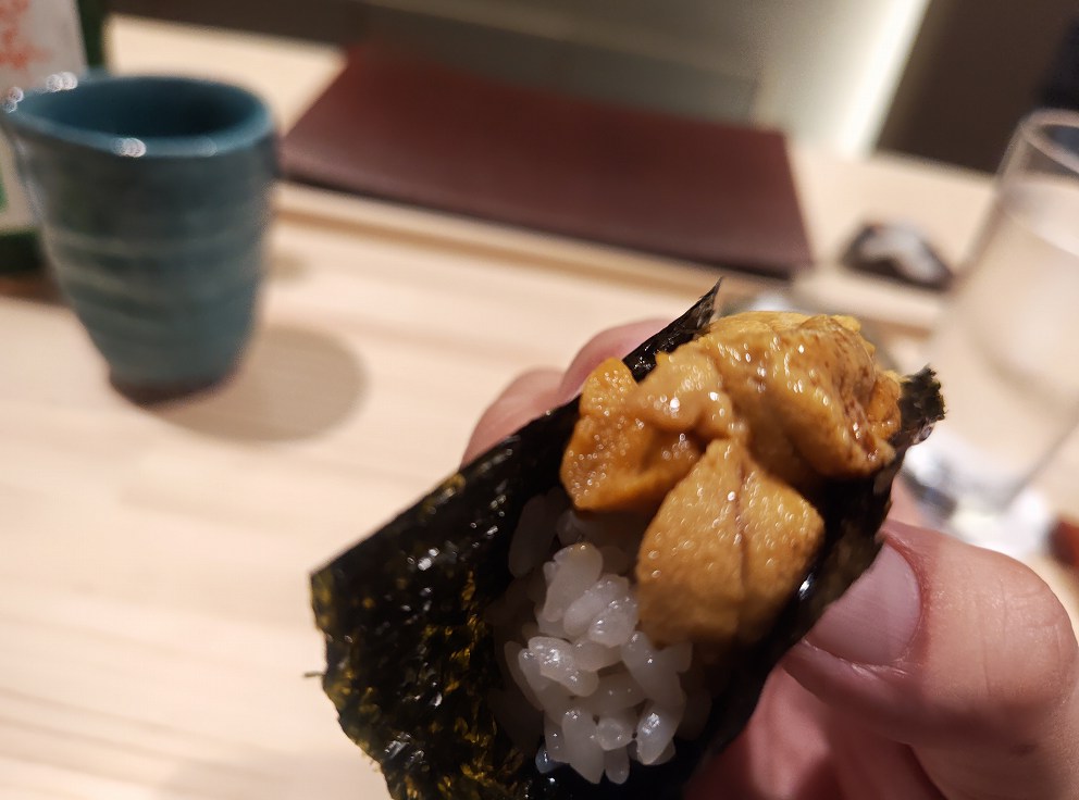手巻きスタイルの赤雲丹でした(軍艦のときもあるそう)。