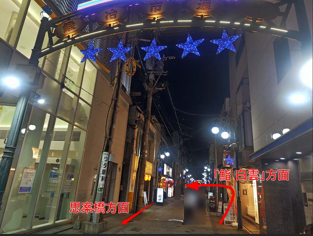 すると「右手」に「鮨 白雲」さんが見えてきます!