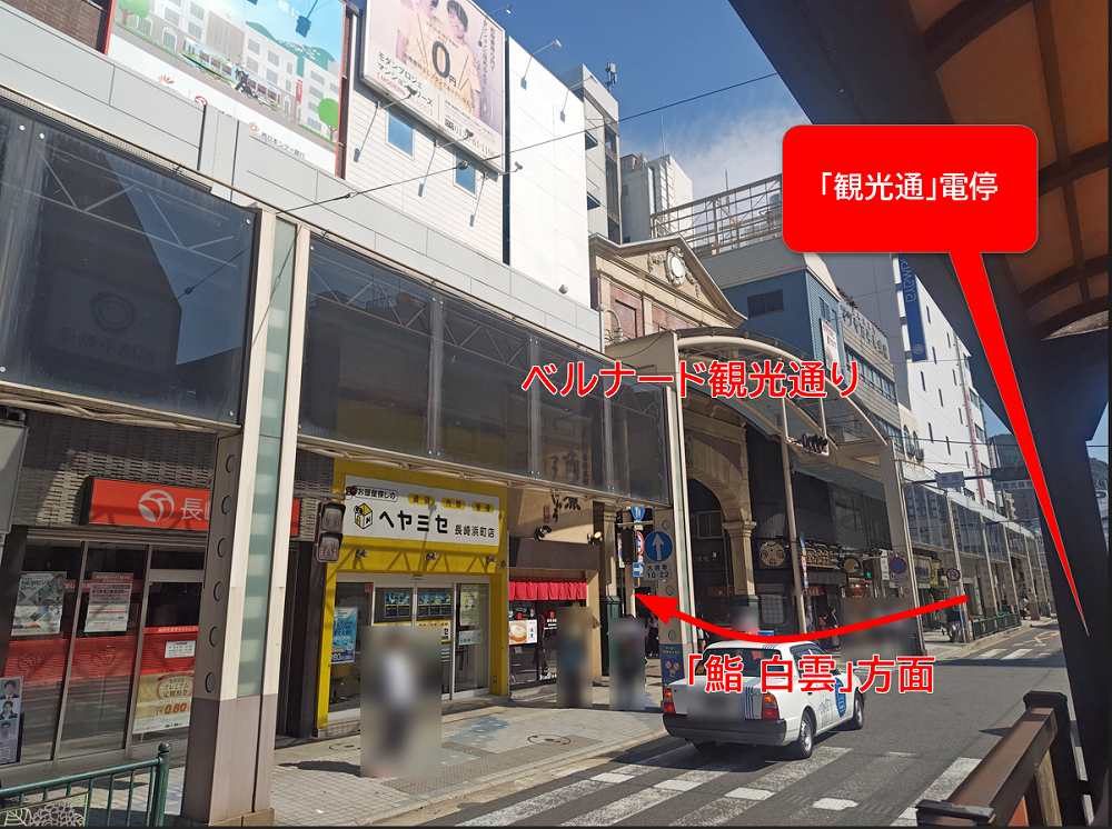 最寄り駅は長崎電気軌道さんの「思案橋」電停と「観光通」電停になります。